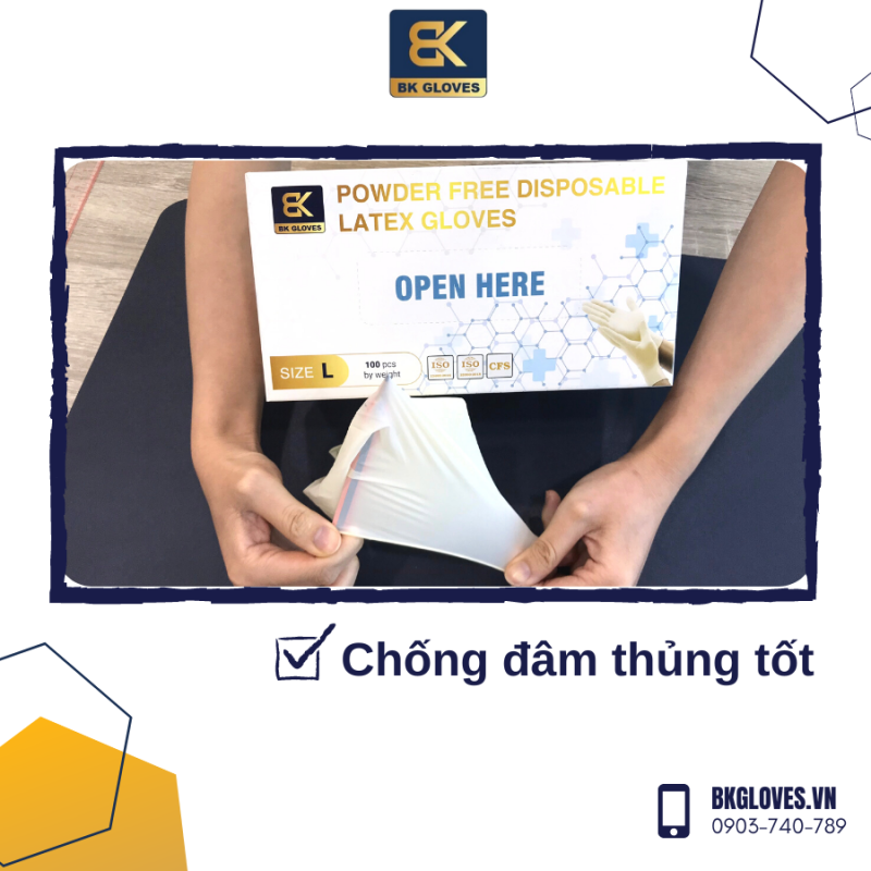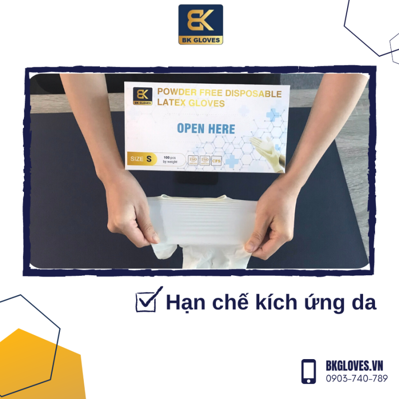 Găng tay cao su Latex không bột BK Gloves được làm từ vật liệu Latex Cao su Tự nhiên theo công nghệ mới với những ưu điểm chính như: